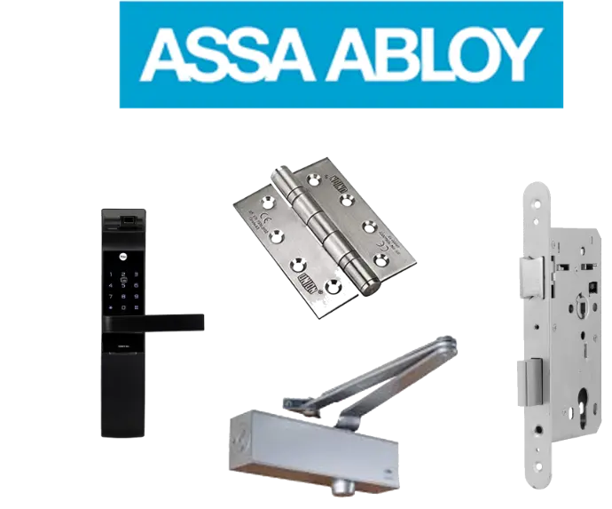 Hinges, door locks, handles, door closers, panic bars, smart locks, security locks etc…