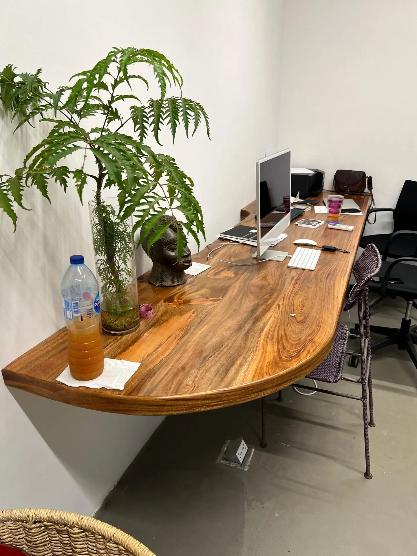 Worked with Nigerian designer Nifemi Marcus Bello to produce unique furniture pieces from local materials such as steel and mahogany, highlighted by a striking copper table.