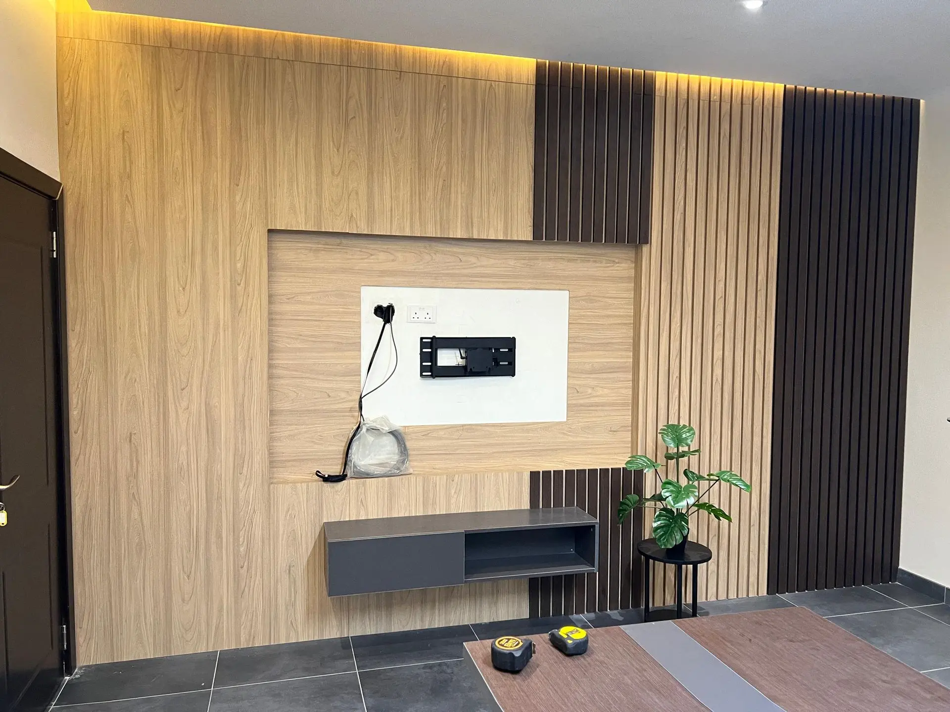 Custom wall cladding and wooden ceilings designed to elevate interiors with warmth and texture.